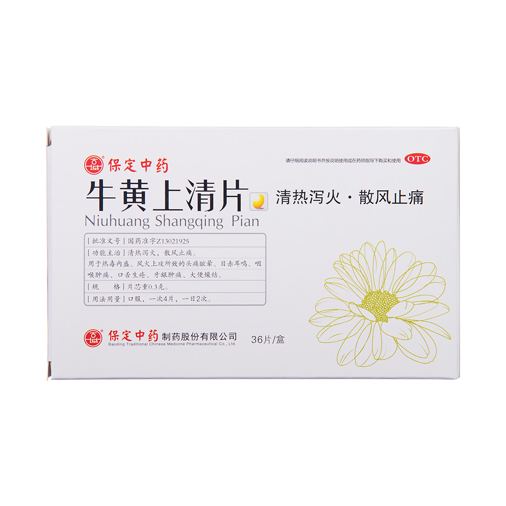 | 主要原料 | 人工牛黄、薄荷、菊花、荆芥穗、白芷、川芎、栀子、黄连、黄柏、黄芩、大黄、连翘、赤芍、当归、地黄、桔梗、甘草、石膏、冰片。 |