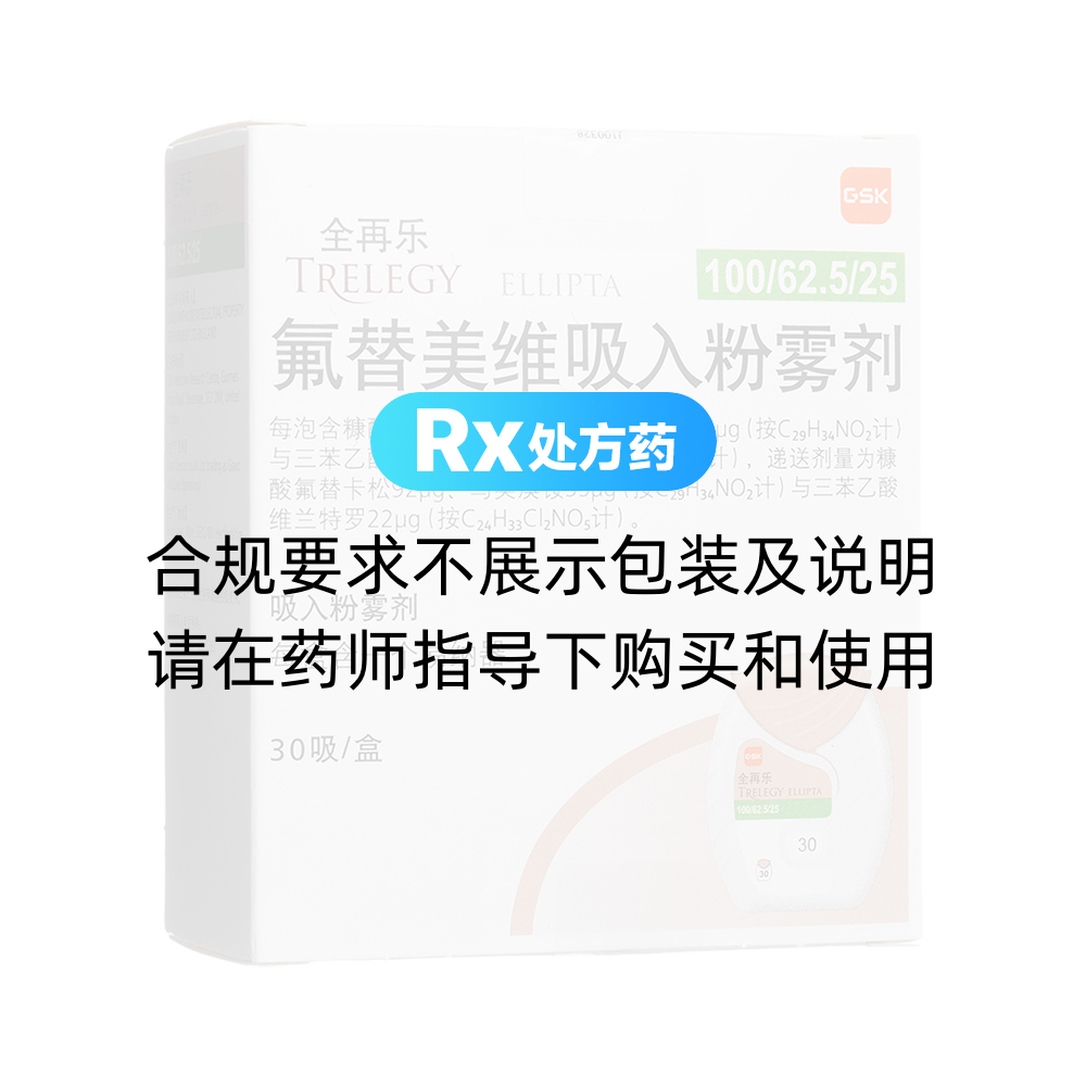 | 主要原料 | 本品为复方制剂,其活性成份为糠酸氟替卡松、乌美溴铵和三苯乙酸维兰特罗。 |