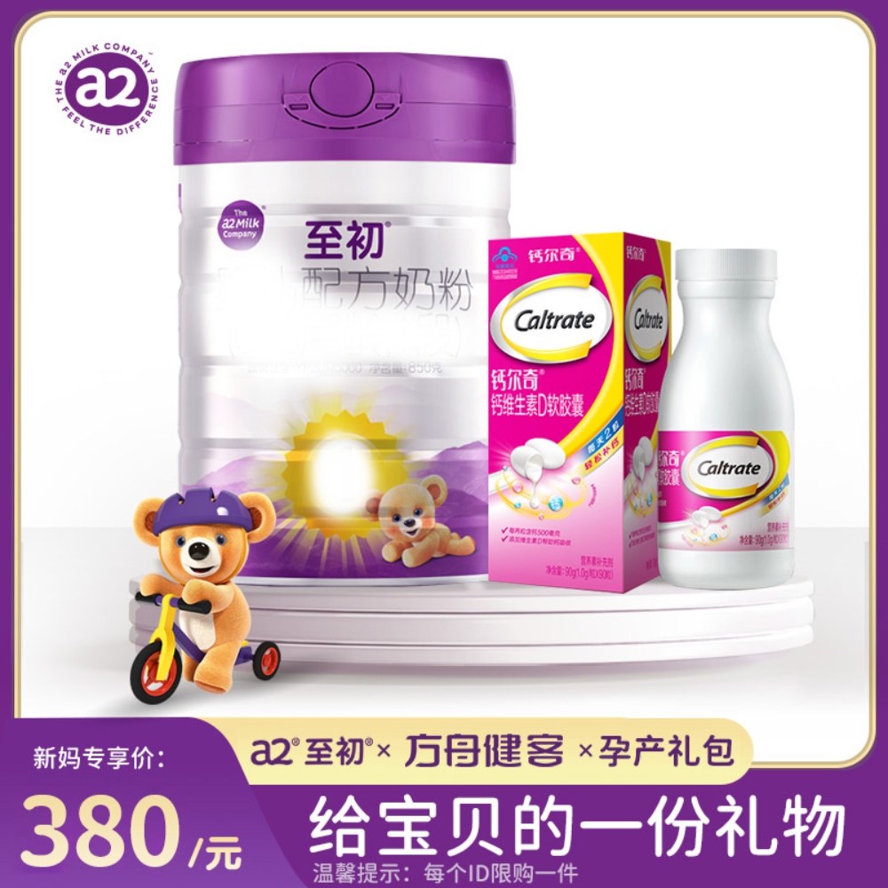 | 产品品名 | a2至初1段2件套装(婴儿配方奶粉0-6月龄+钙尔奇钙维生素D软胶囊) |