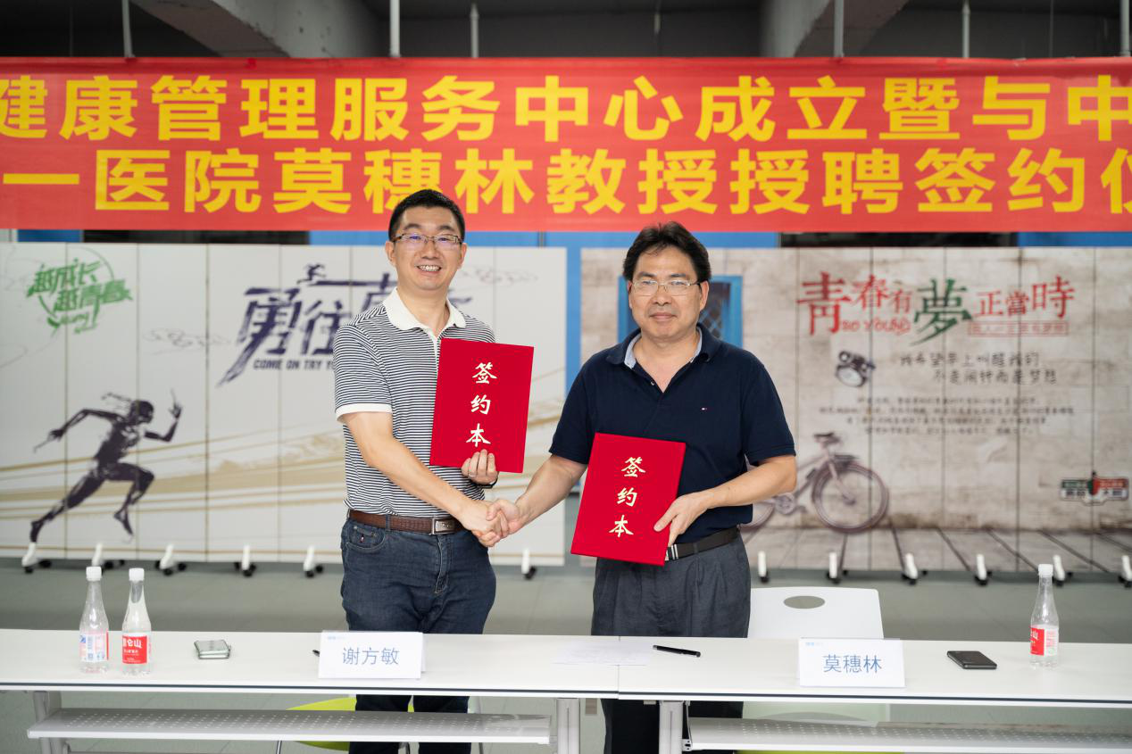 (健客CEO谢方敏与中山大学附属第一医院莫穗林教授进行仪式)